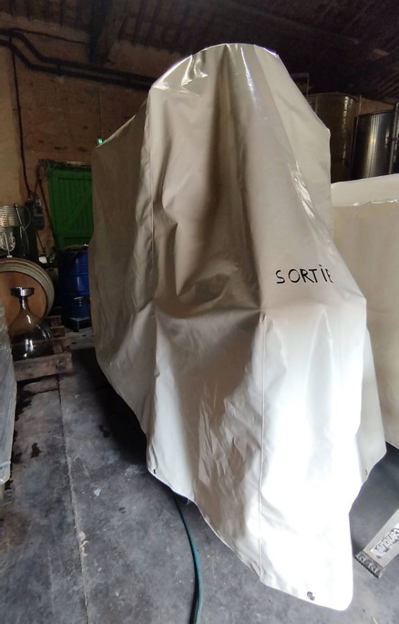 Confection bâche de protection en PVC précontraint Serge Ferrari 705 Texyloop crème