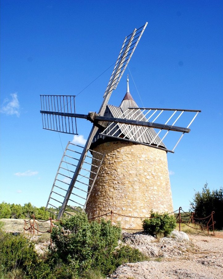 Habillage de toiles sur les voiles du Moulin de St-Chinian