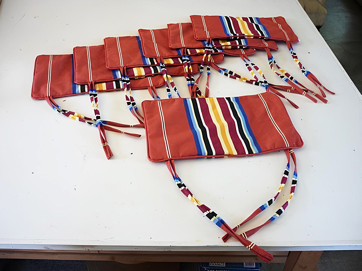 Coussins pour salon de jardin, tissu Antibes outdoor, coloris coquille acrylique résistant UV, traité teflon, finition passepoil, garniture mousse haute résilience