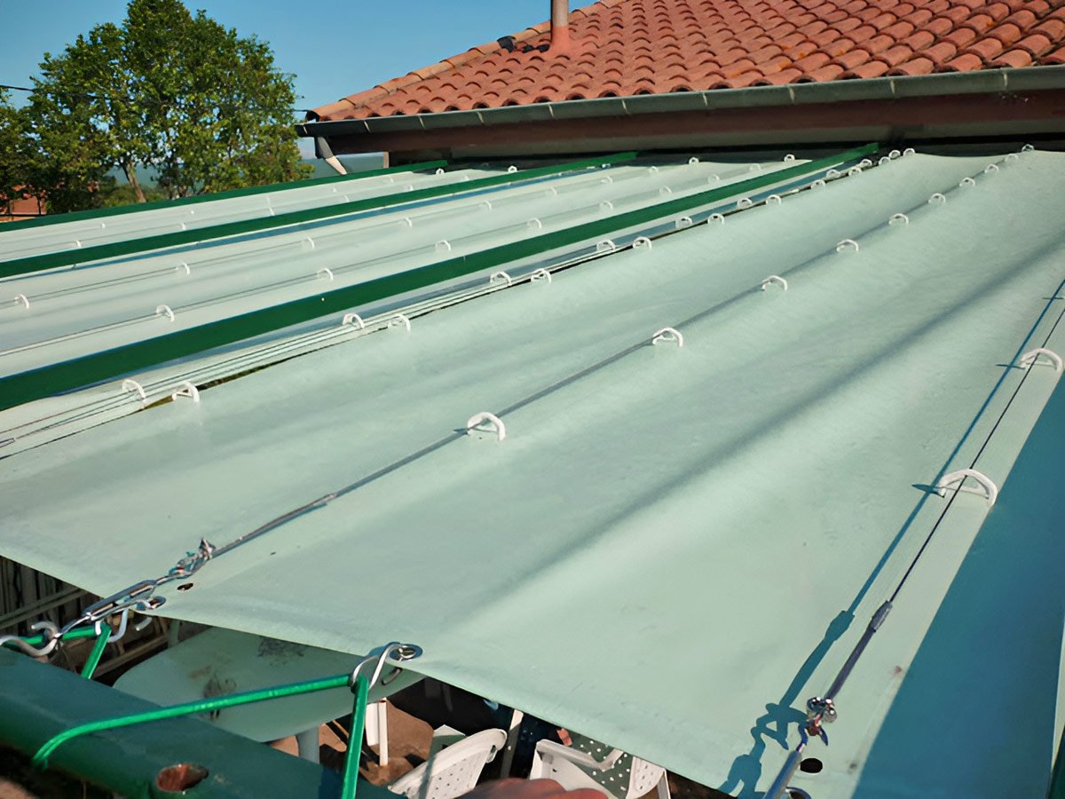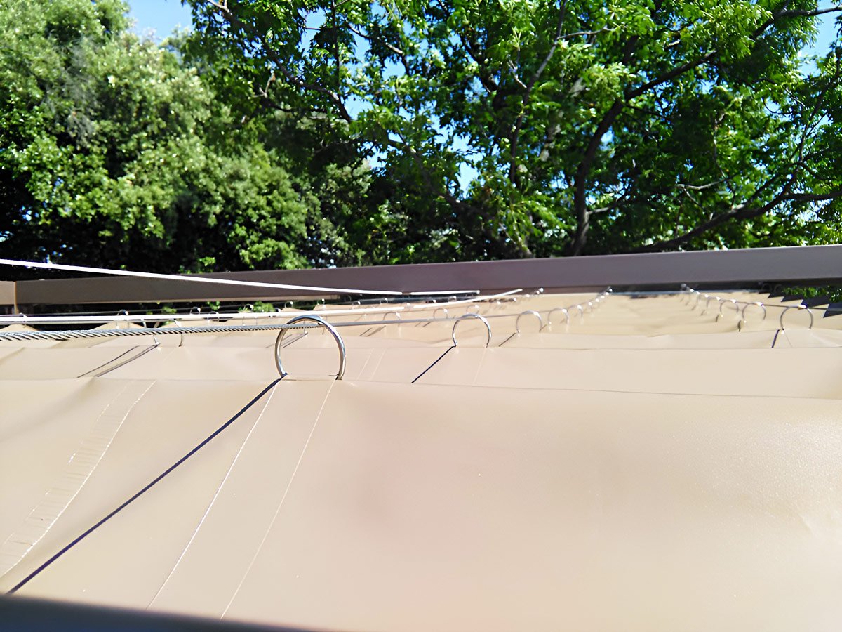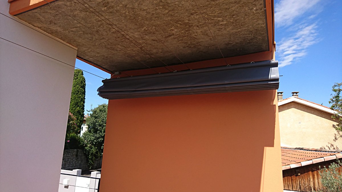Installation de 3 stores rouleaux à coffre avec chainettes en toile PVC Soltis 99 de Serge Ferrari.