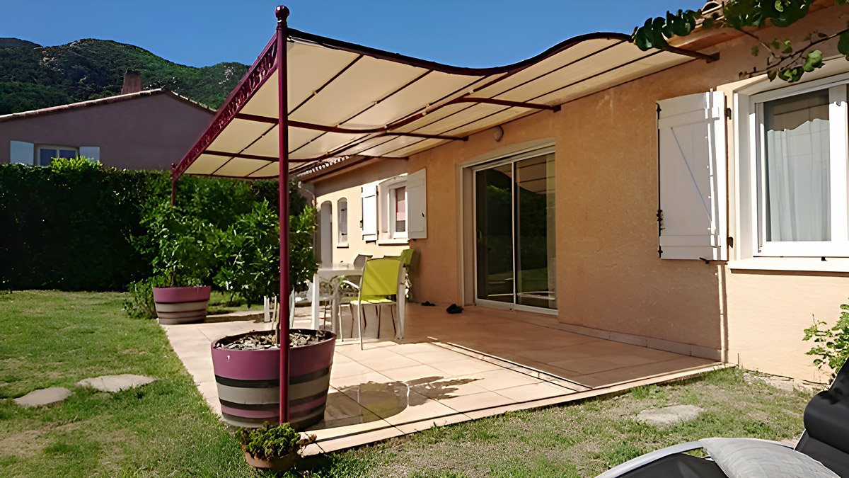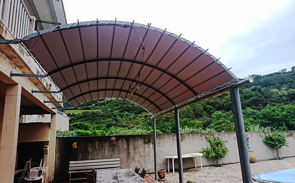 Pergola en toile Serge Ferrari Soltis Proof 502 coloris crêpe au chocolat