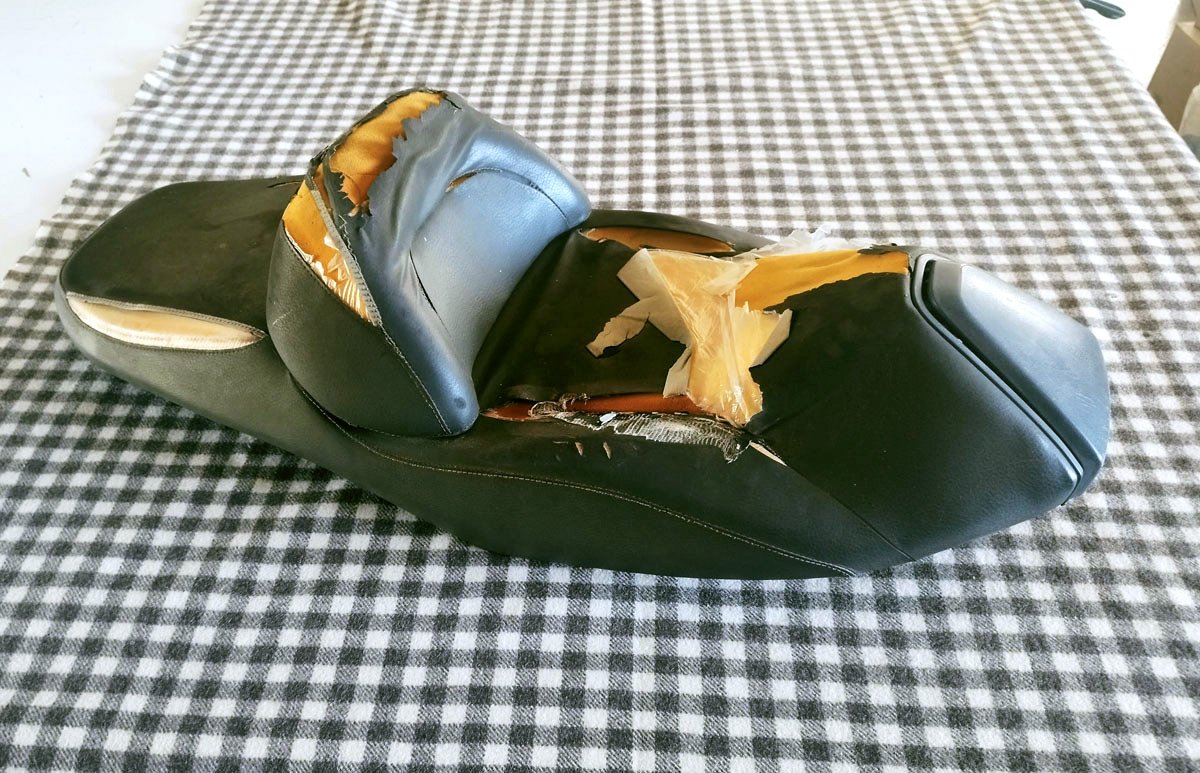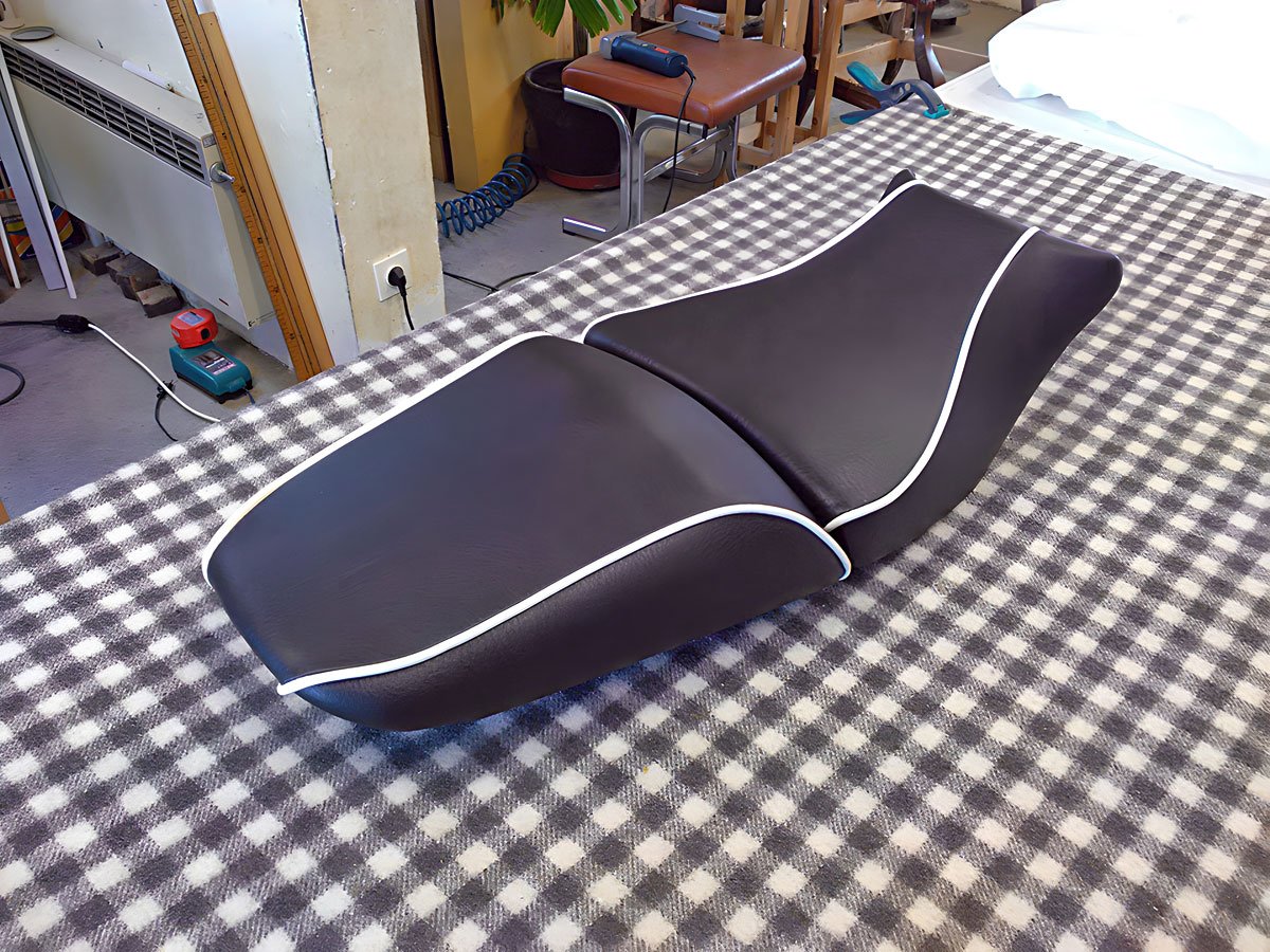 Réfection d'une selle de moto en simili Cotting Boeing-2000 N&B