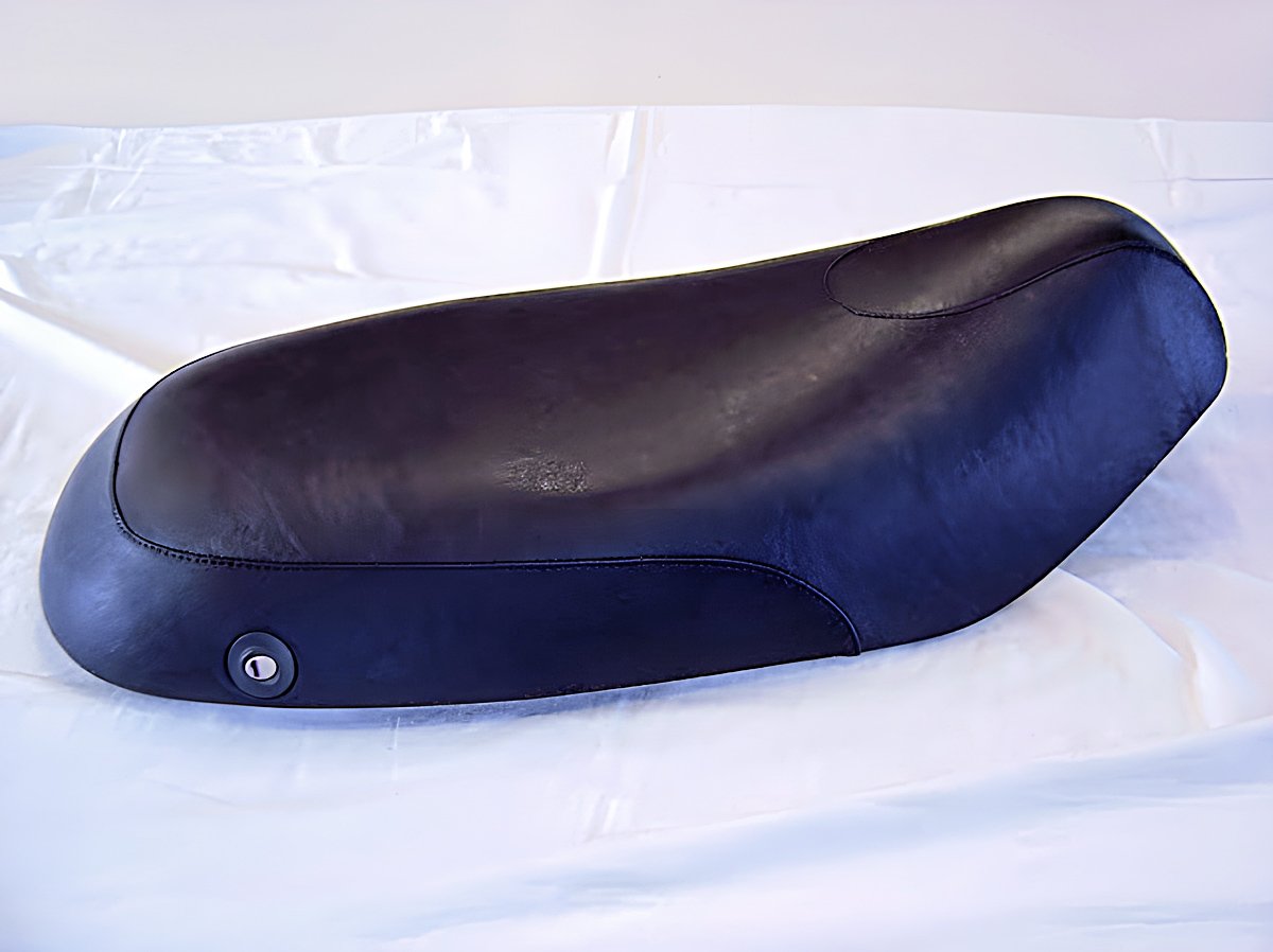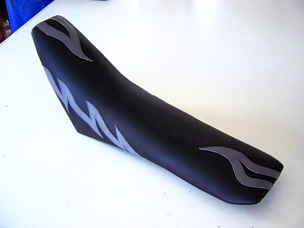 Personnalisation d'une selle de quad en cuir noir liseré jaune