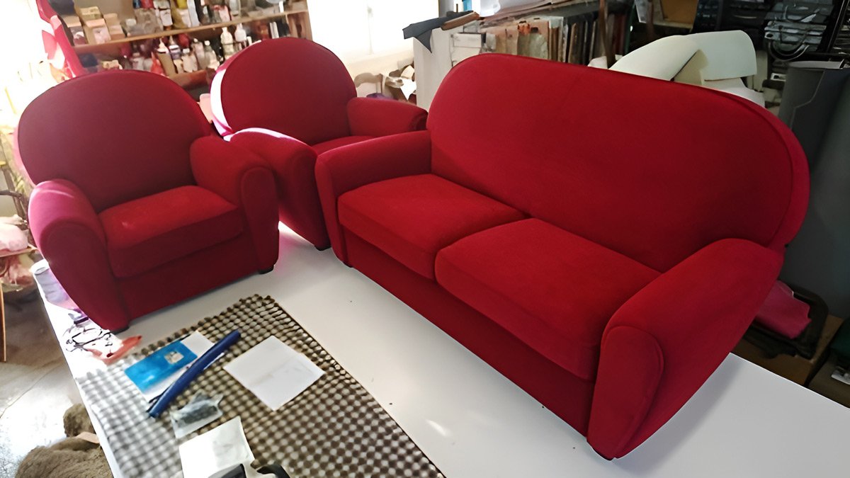 Réfection d'une chaise style Louis XV en tissu velour rouge