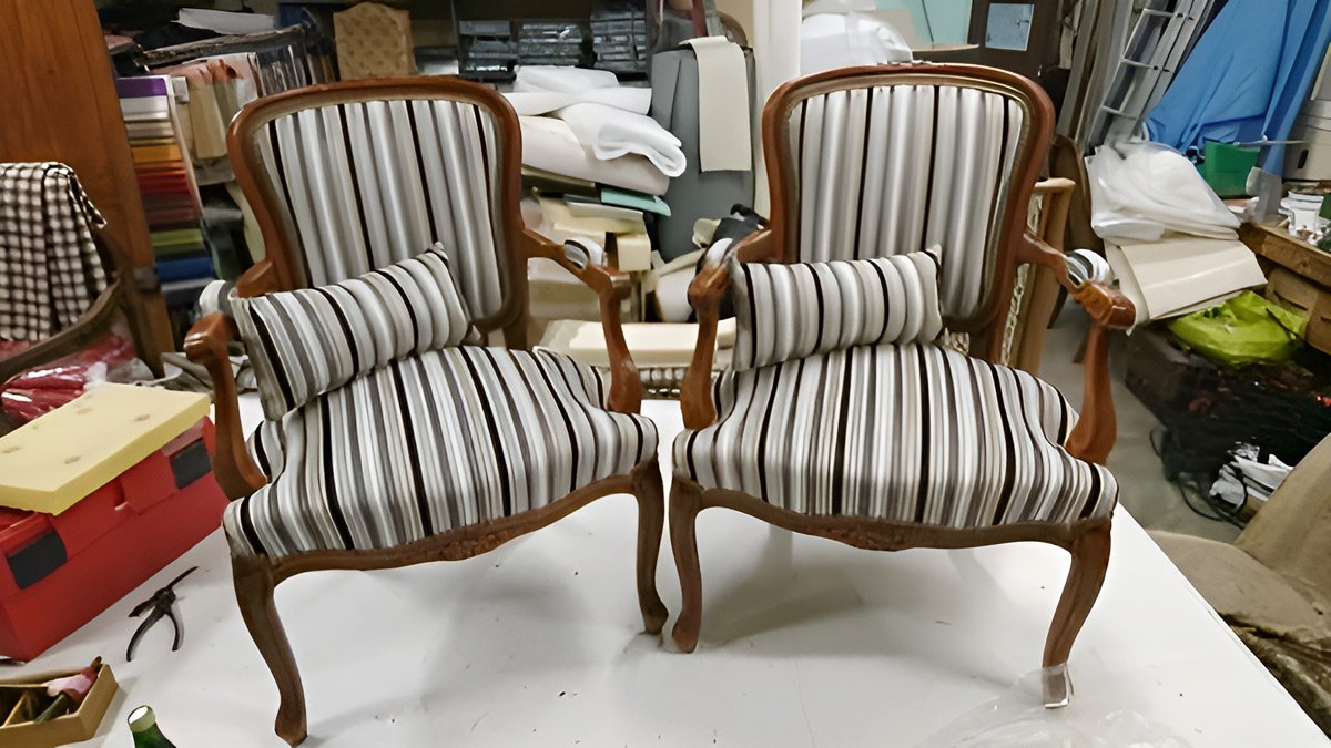 Réfection d'un fauteuil cabriolet en tissu à bandes