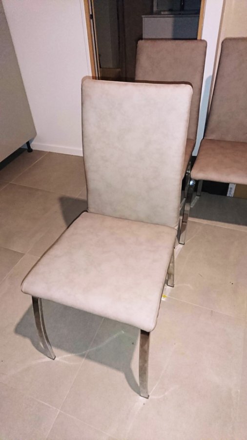 Réfection d'une chaise moderne en alu simili cuir coloris sienne