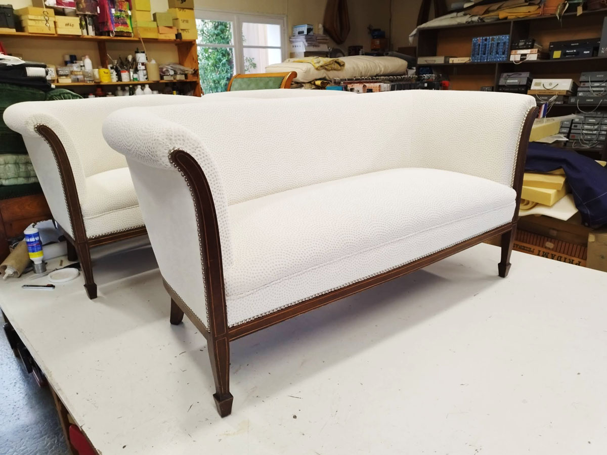 Je confectionne les sièges, les restaure ou les construis. Pour les réparations, je découpe selon les mesures relevées, le tissu choisi et le fixe ensuite sur le squelette du siège en question.