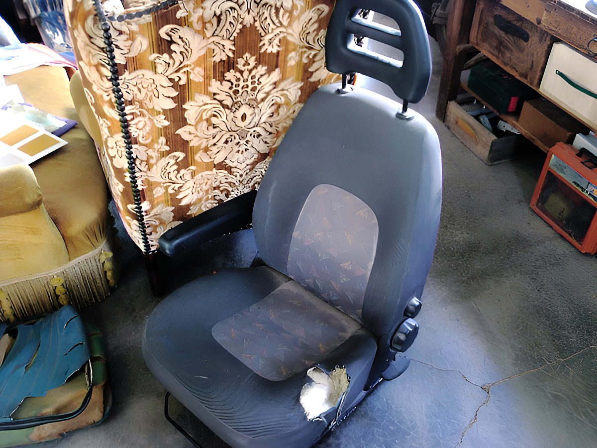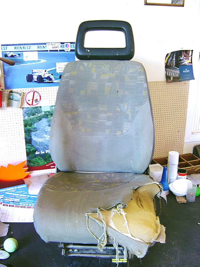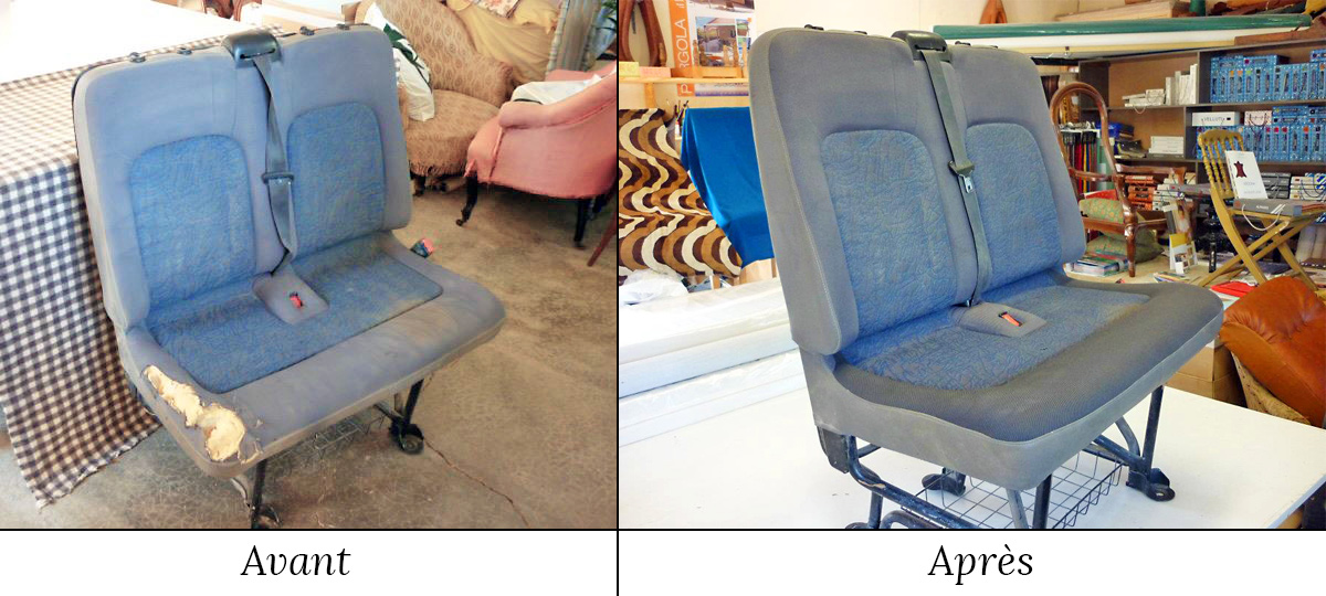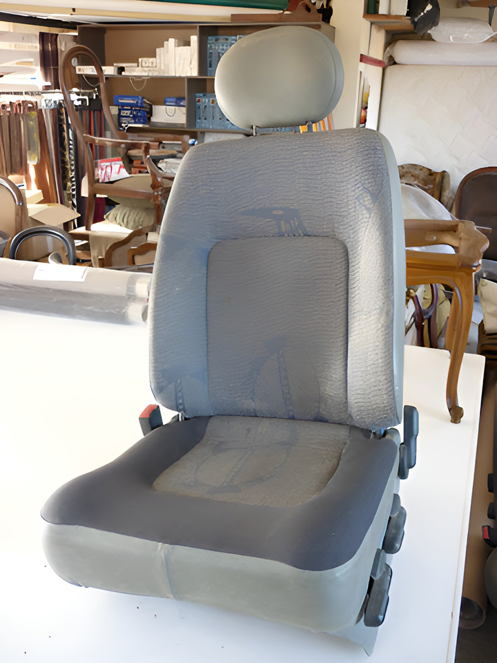 Ci-dessous, l'exemple d'un travail réalisé sur un siège de Renault Master. La détérioration classique a force de monter et descendre du véhicule côté conducteur.
