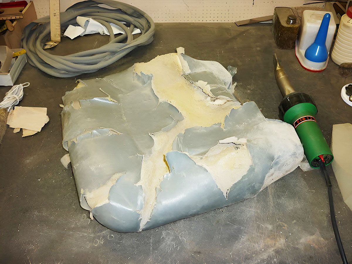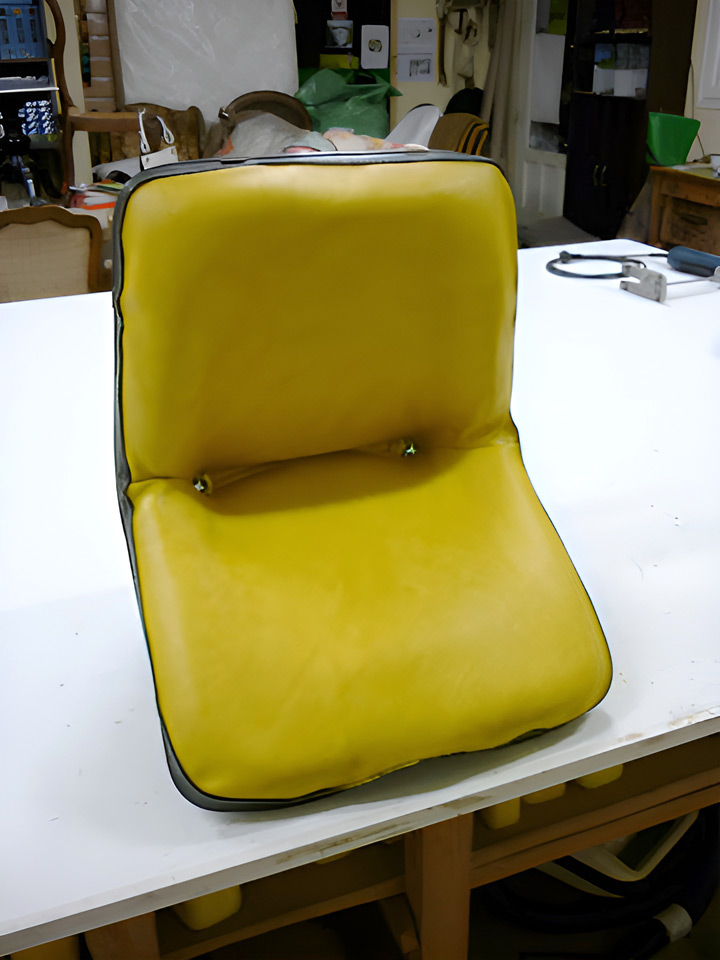 nous réhabilitons l'intégrité du siège pour des questions de sécurité et de posture au travail. En effet, ce type de siège rencontre différents problèmes tels que la détérioration prématurée due aux intempéries (pluies et rayonnements UV) ou à son utilisation intensive.