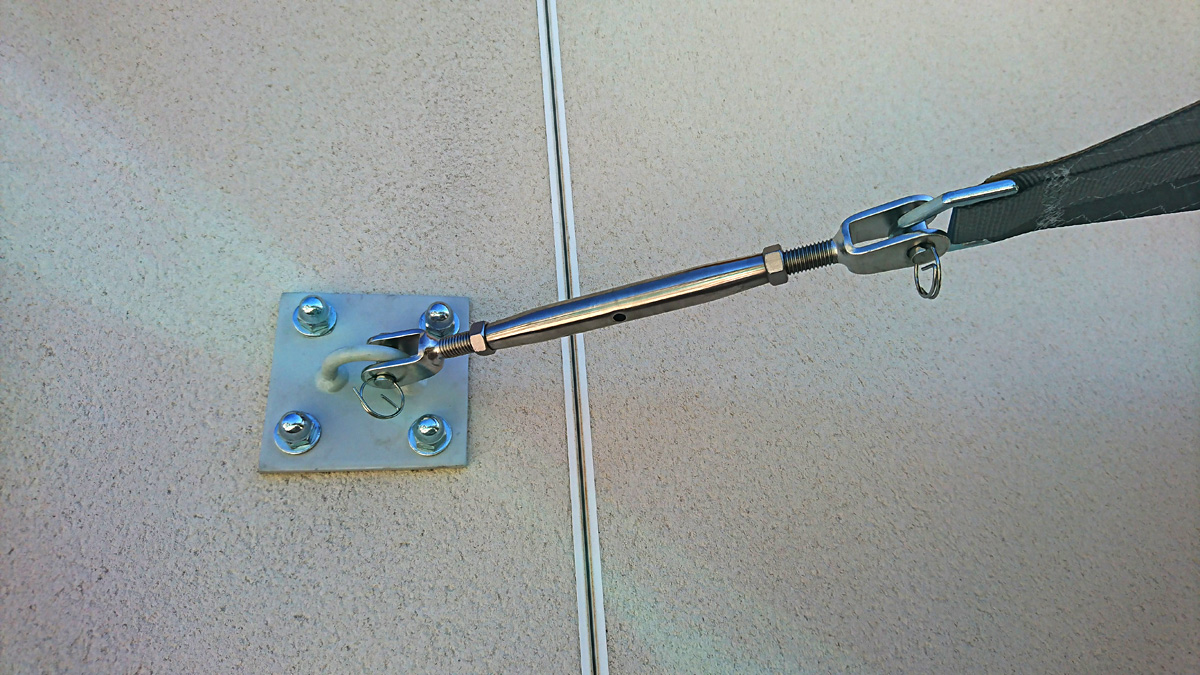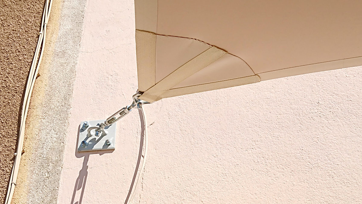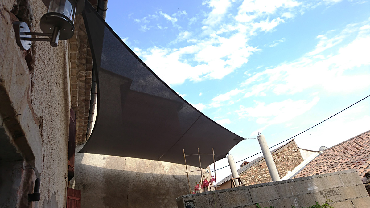 Une voile d’environ 18 m² supporte des tensions de l’ordre de 300 kg par pointe et ces tensions peuvent doubler en fonction de l’implantation et des conditions météorologiques. Le recours à un installateur professionnel est essentiel, car nous saurons prendre en compte tous les paramètres. Ainsi, la voile correctement installée et tendue garantira le meilleur effet visuel, et ne subira pas de vieillissement accéléré par battement au vent ou de dégradation à cause des poches d’eau.