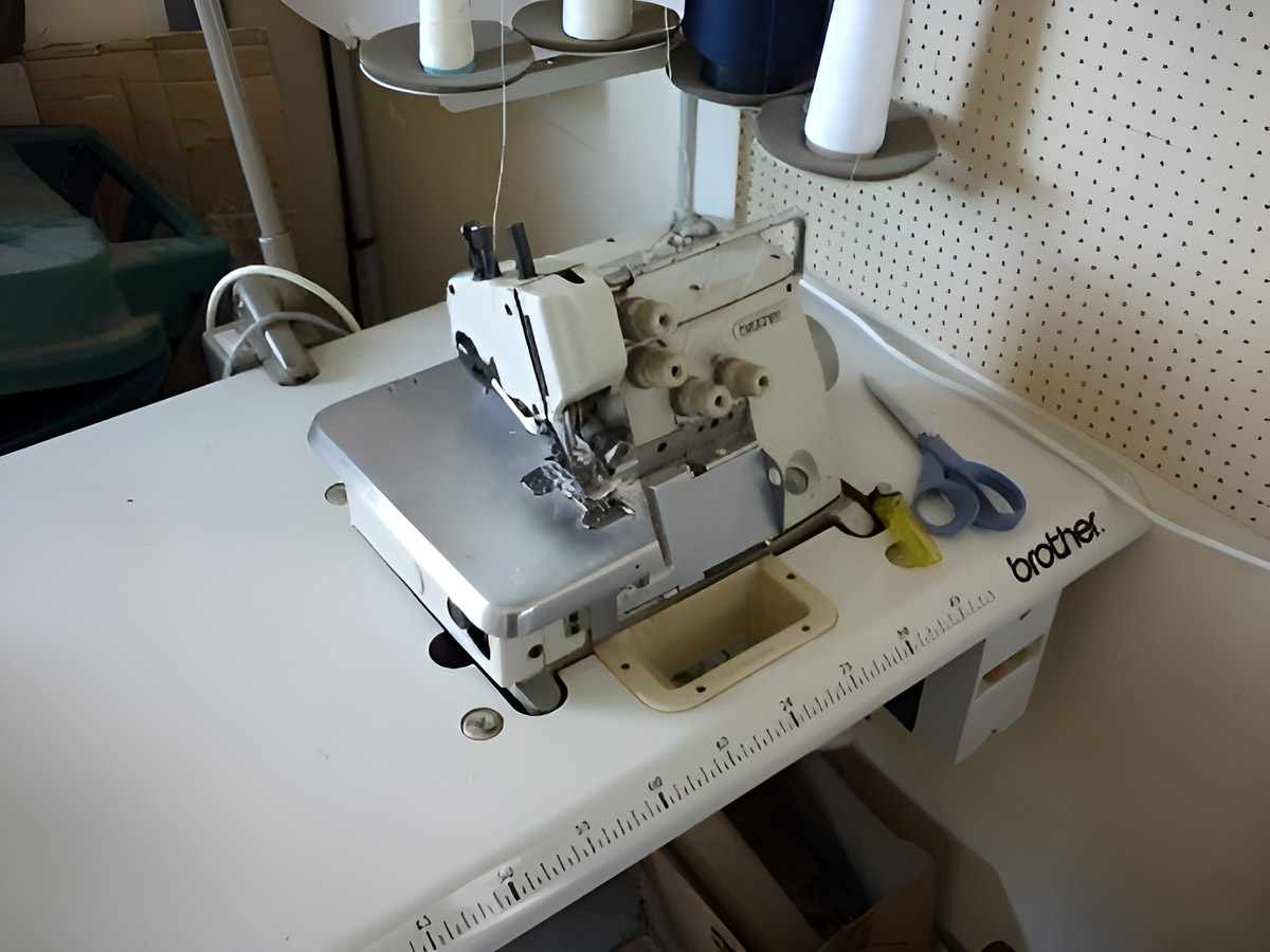 On trouve également une grande table, lisse, facilement nettoyable, parfaite pour la découpe de tissus ou tout autre traçage précis de bâches, ainsi que des machines à coudre, à « triple entraînement » capables de coudre jusqu'à un centimètre d'épaisseur de cuir, une machine « simple entraînement » pour les tissus fins et délicats.
