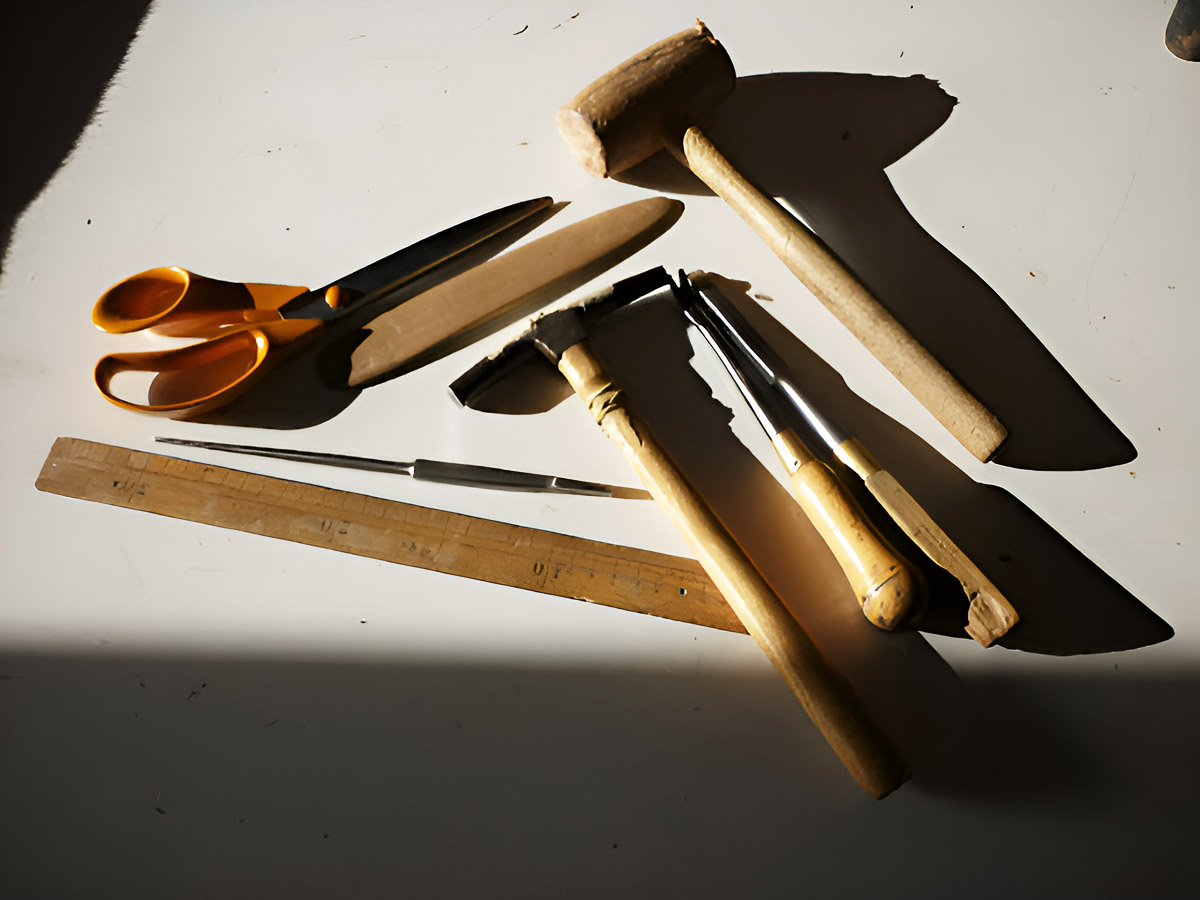 Il comporte une grande table disposant de diverses matrices, pour œillets, à rivets, à pression Dot®, à boutons, à ressort No Sag®, un étau, une meuleuse, mais aussi les plaques de plomb pour trouer sans désaffûter les emportes-pièces. Les outils de découpe et de confection de toutes sortes de matières, bois, cuirs et tissus ornent les murs de l'atelier dans un éventail digne d'un inventaire à la Prévert.