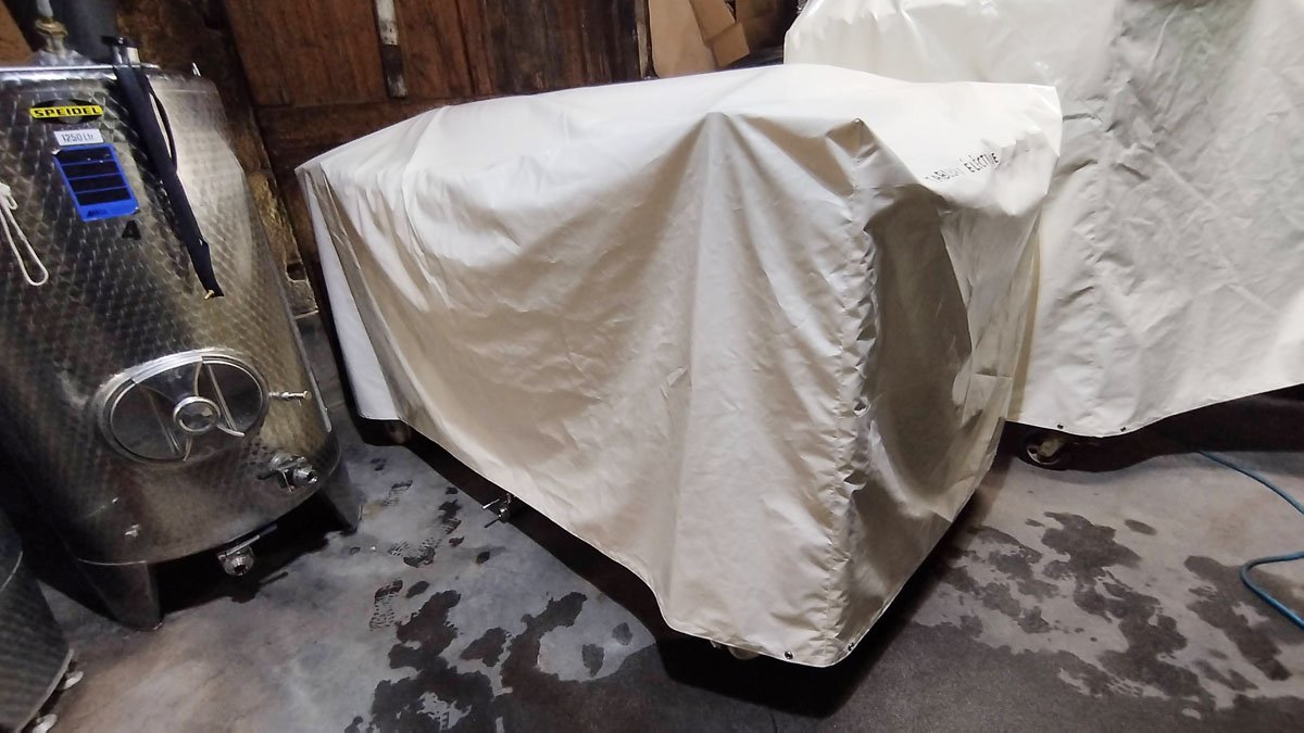 Confection bâche de protection en PVC précontraint Serge Ferrari 705 Texyloop crème