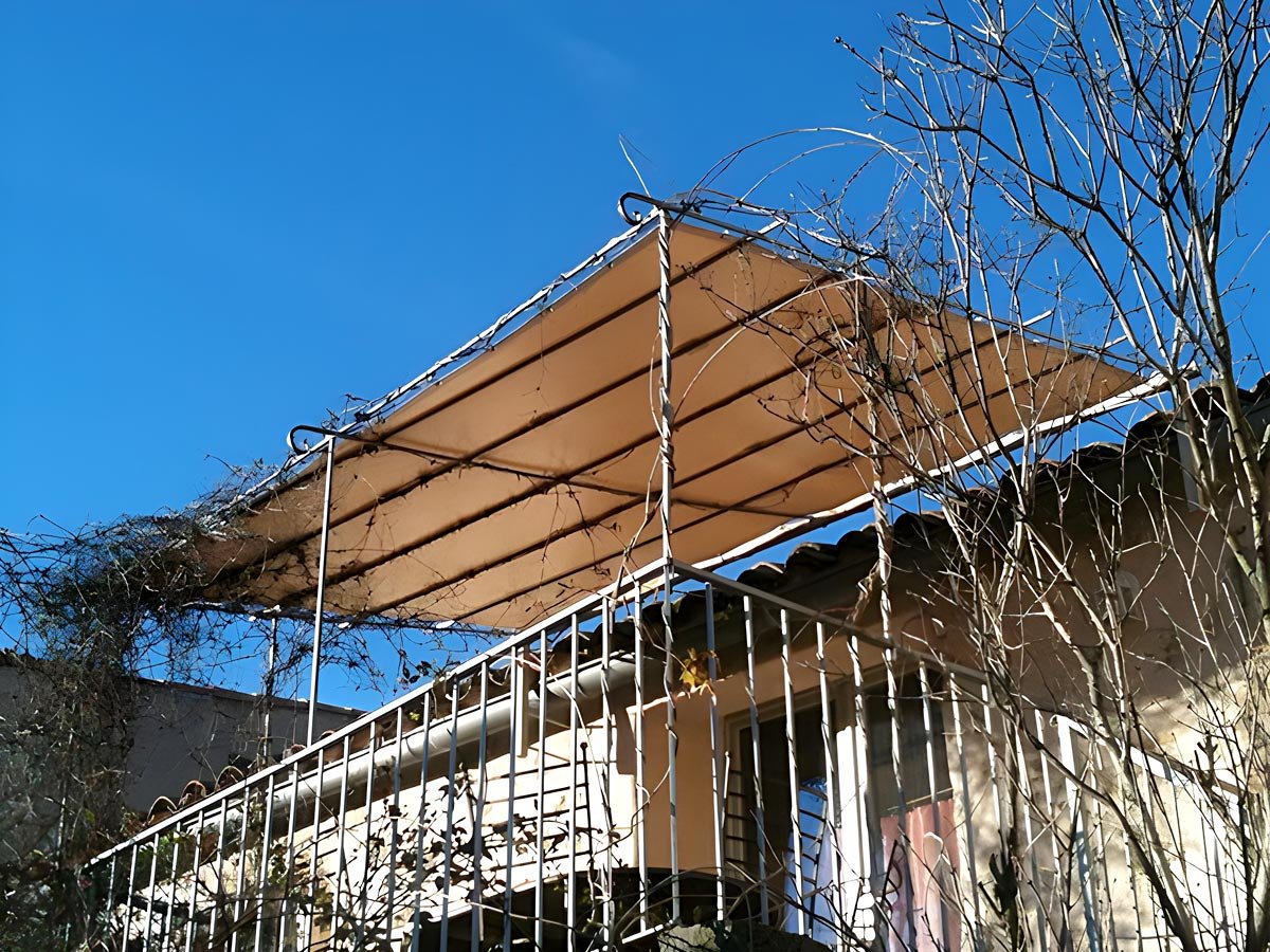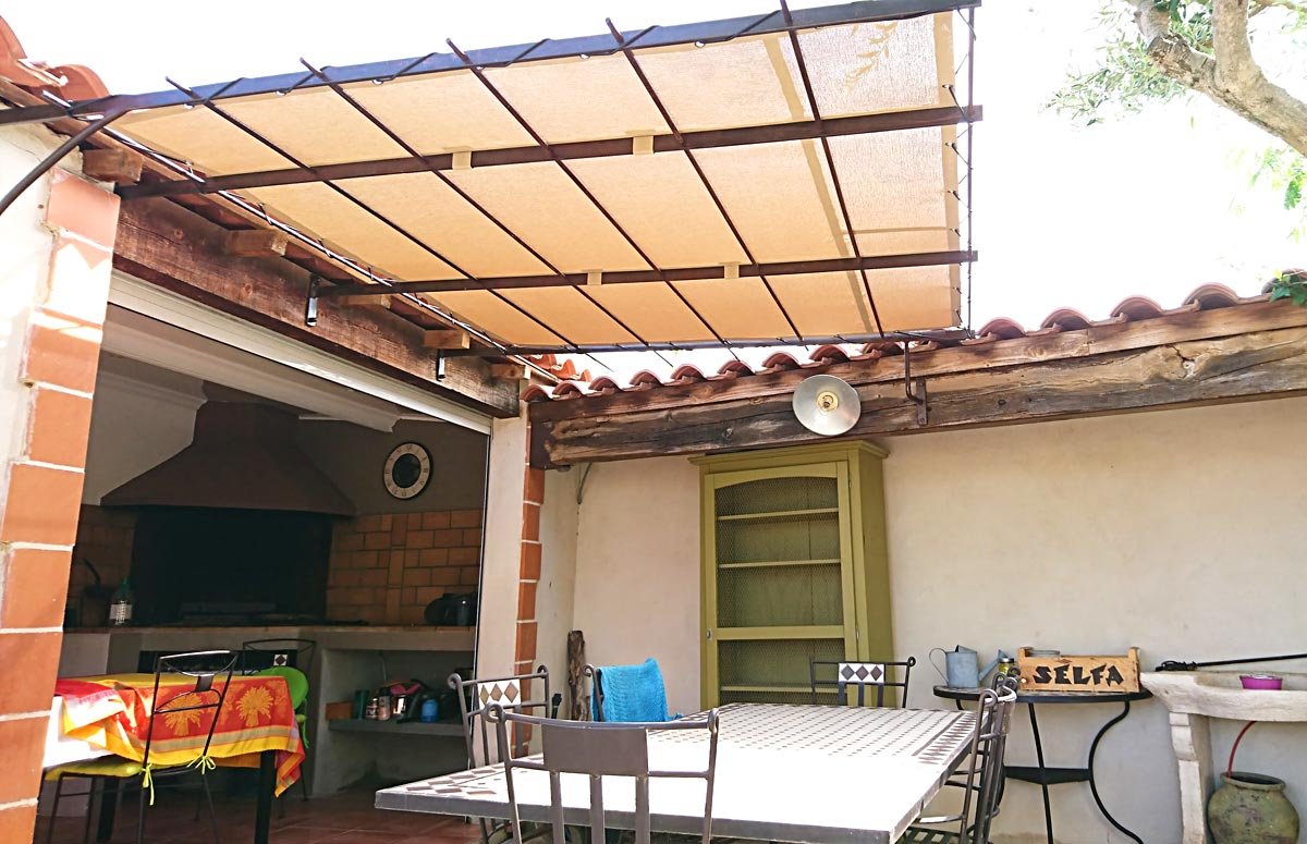 Pergola en toile Serge Ferrari Soltis Proof 502 coloris crêpe au chocolat