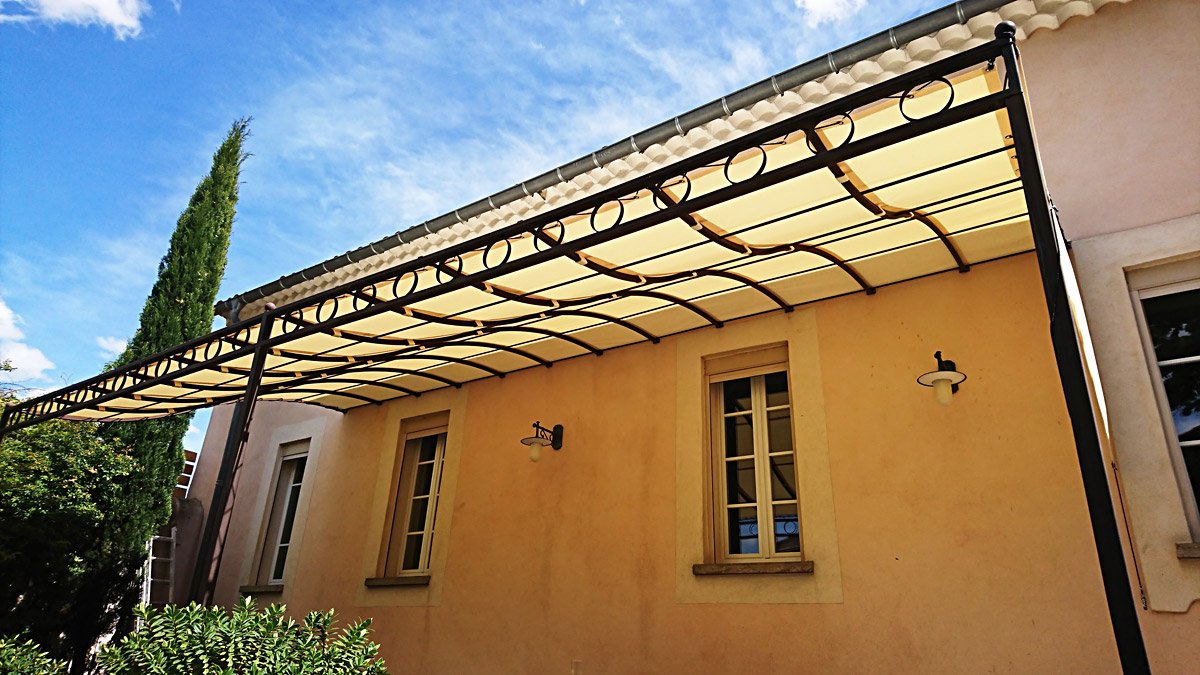 Pergola en toile Serge Ferrari Soltis Proof 502 coloris champagne