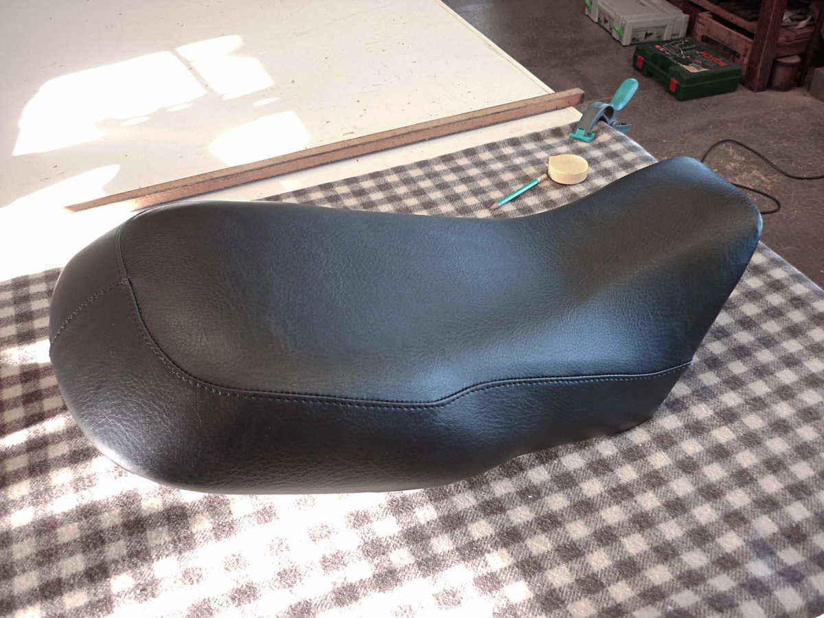 Réfection d'une selle de moto en simili Cotting Boeing-2000 N&B