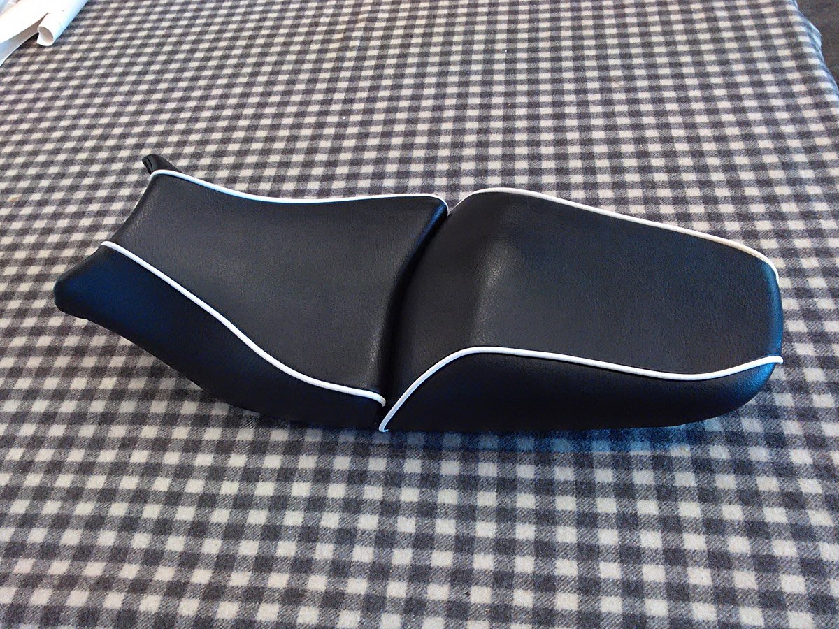 Réfection de selles de moto simili cuir bleu roi & blanc