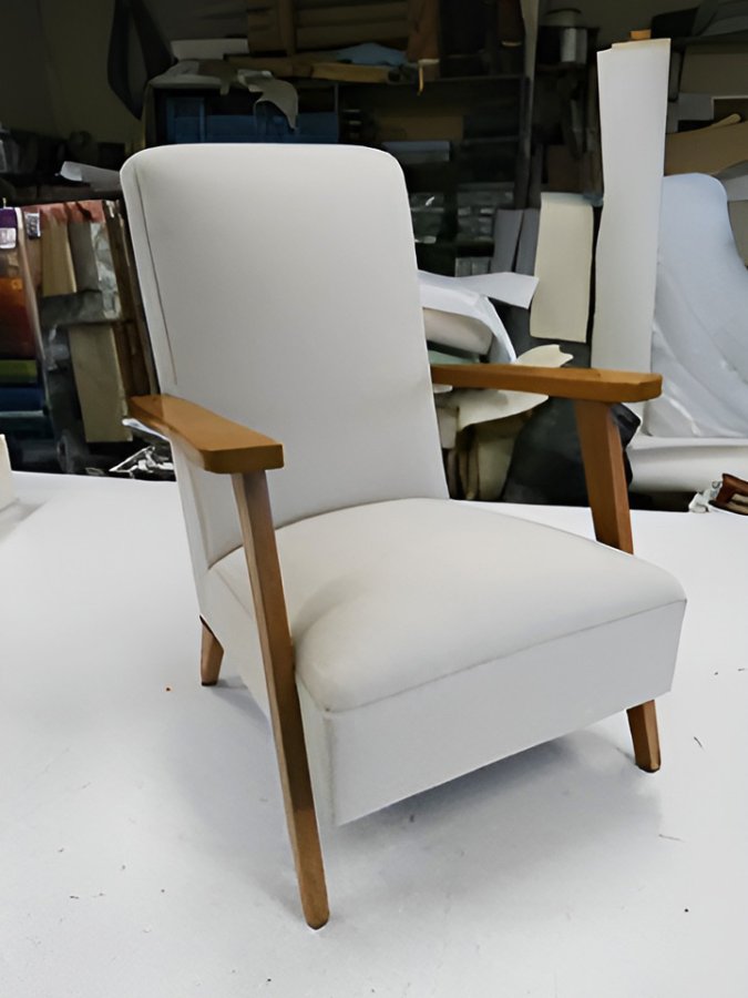 Réfection d'un fauteuil contemporain en simili cuir coloris ivoire