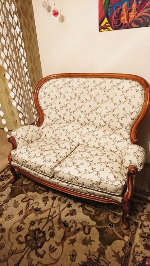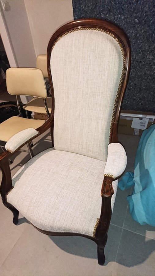 Réfection d'une chaise style Louis XV en tissu velour rouge