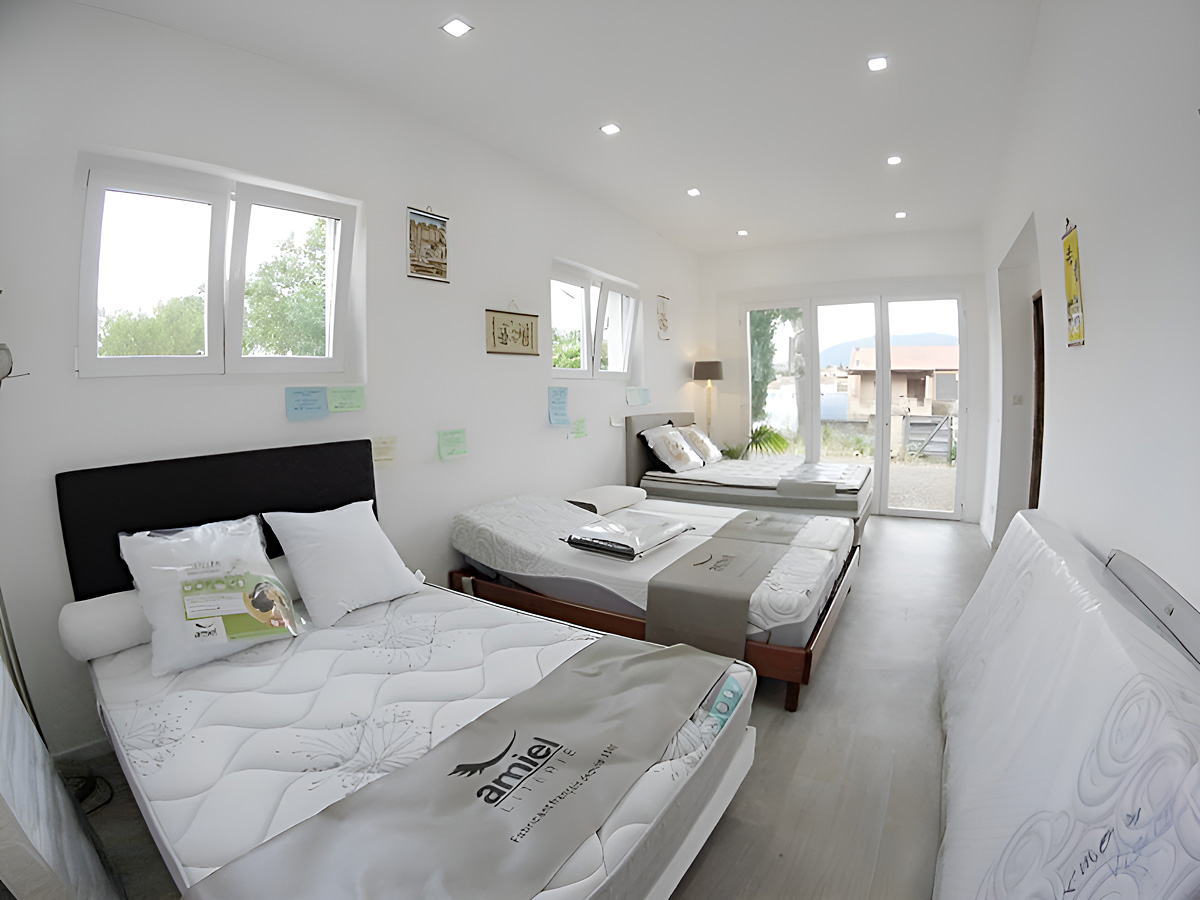 Y sont exposés différents modèles de matelas et sommiers de notre fournisseur Amiel Literie ⯈ basé à Toulouse. Vous pourrez y trouver notamment une gamme étendue de matelas et d'accessoires à l'usage des professionnels de la literie et des collectivités.