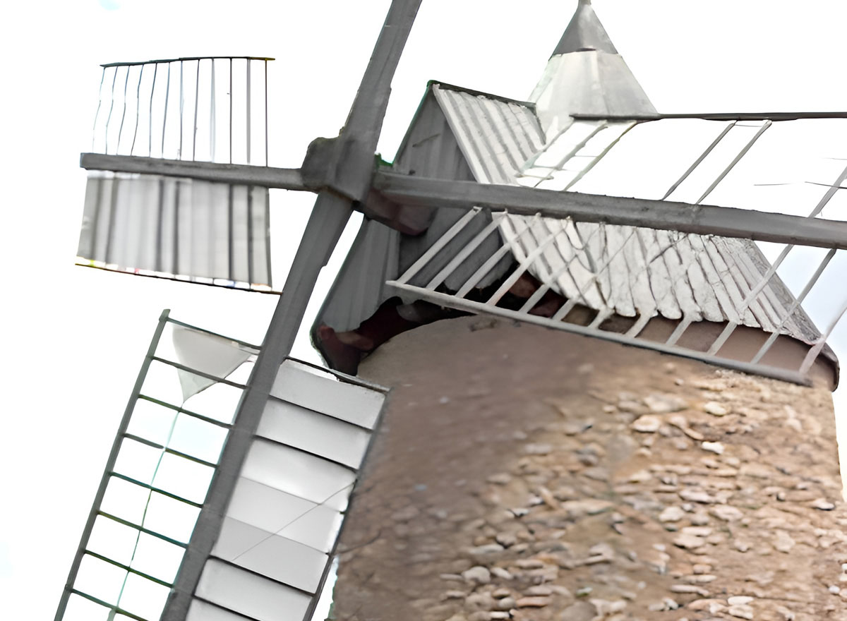 Confection de voiles pour la restauration du Moulin de Saint-Chinian dans le cadre de la Journée européenne des moulins et du patrimoine meulier, avec l'association Richesses du Saint-Chinianais ⯈