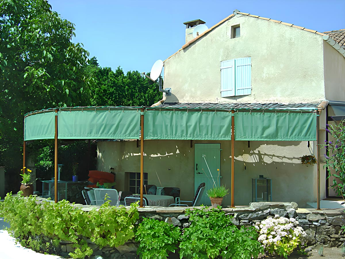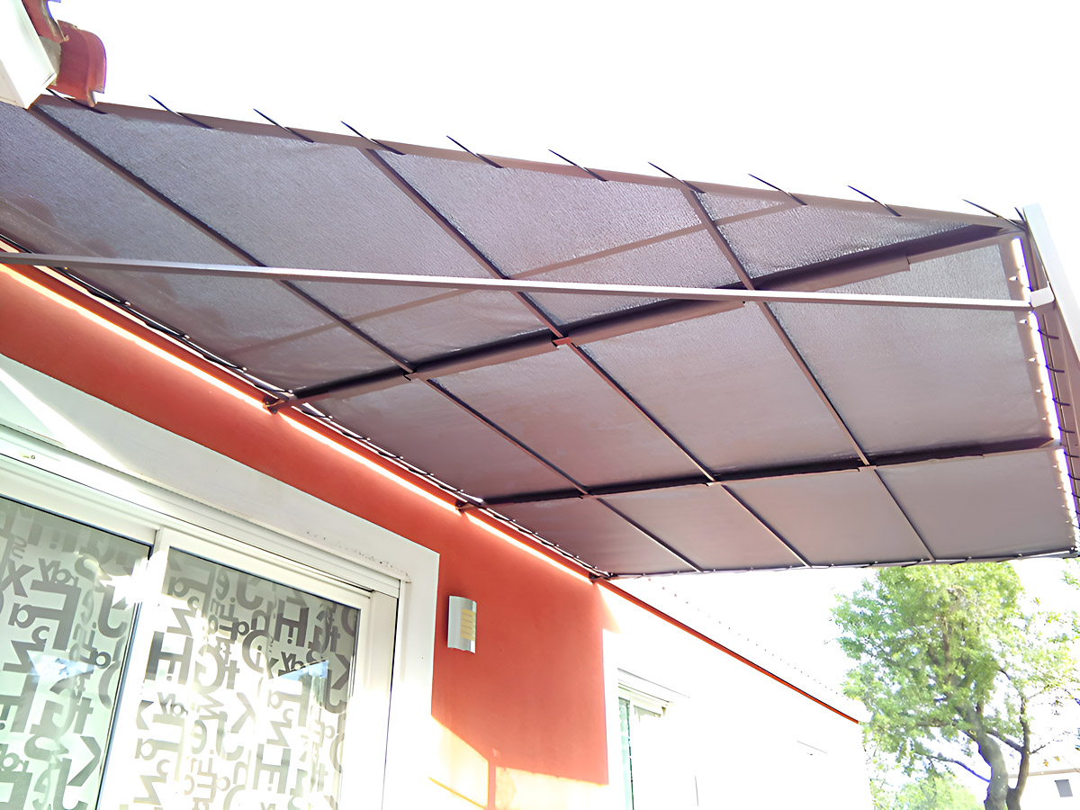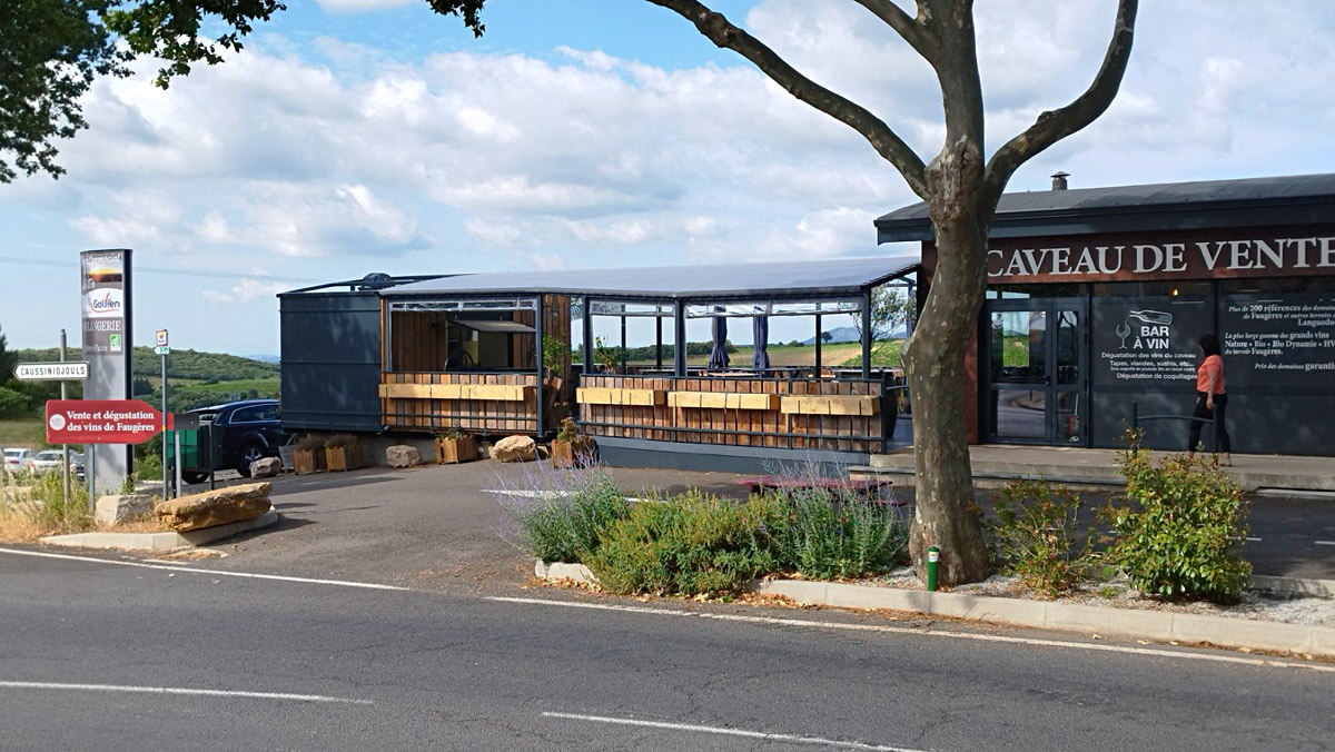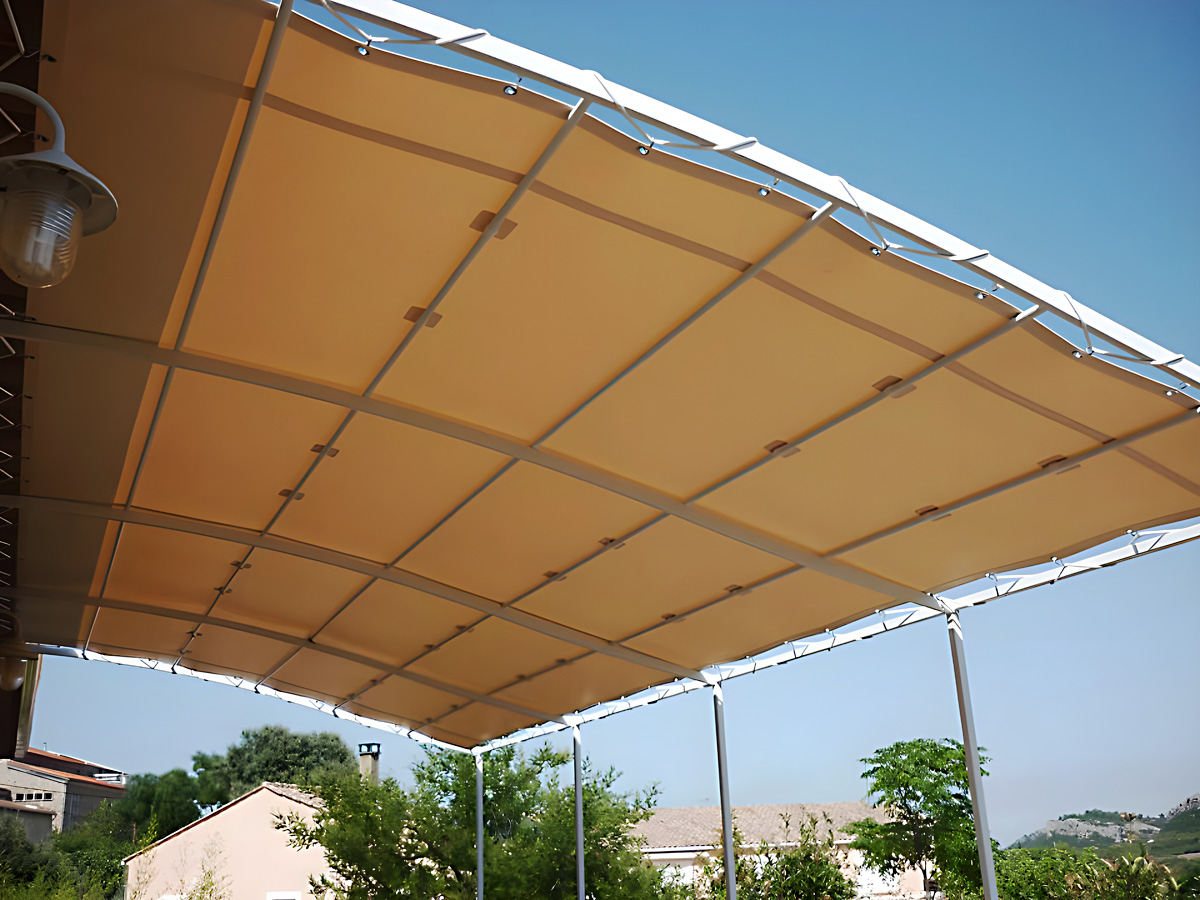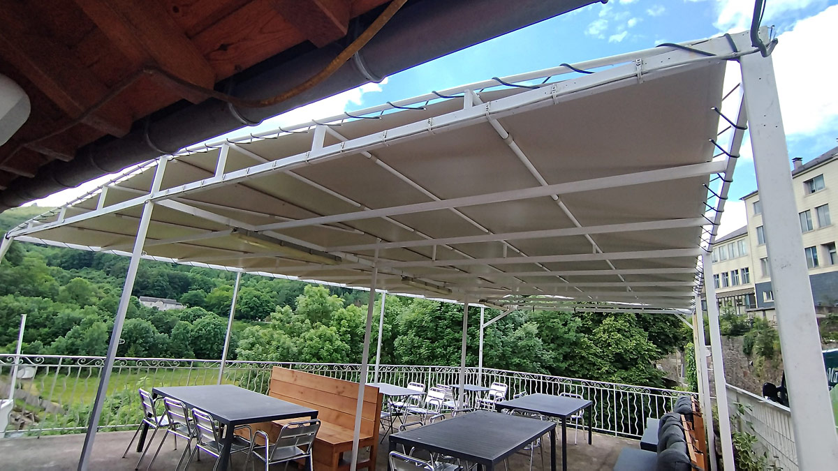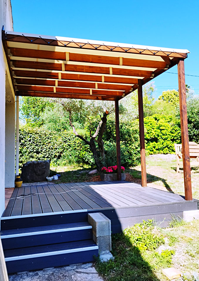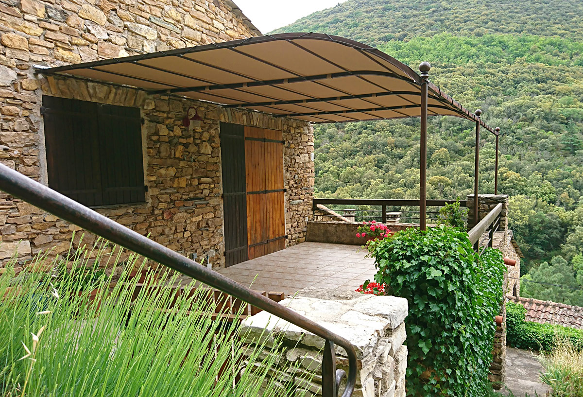 Confection et pose d'une toile de pergola avec Soltis Proof W96 Serge Ferrari à Saint-Chinian pour le projet d'aménagement d'une terrasse d'habitation d'un particulier qui a confié son projet à la Maison Simon.