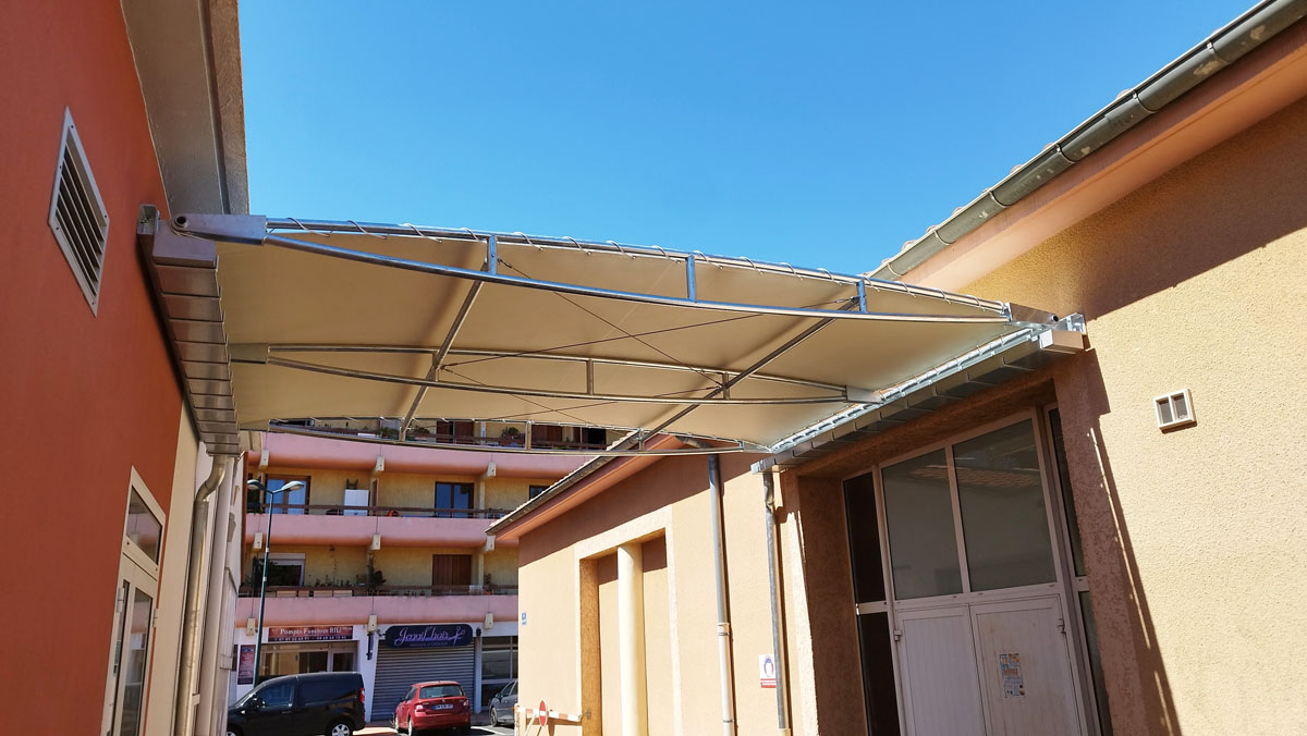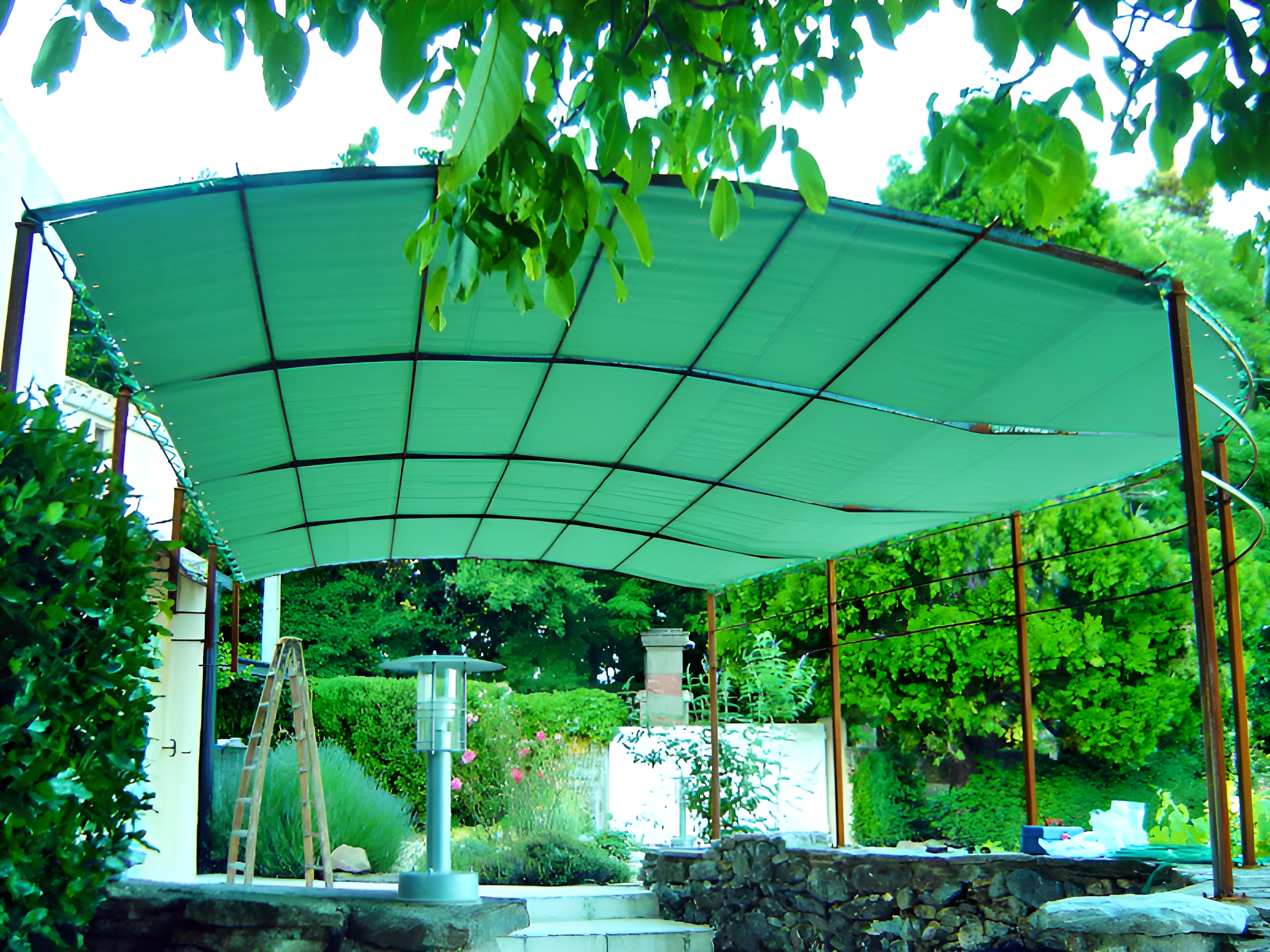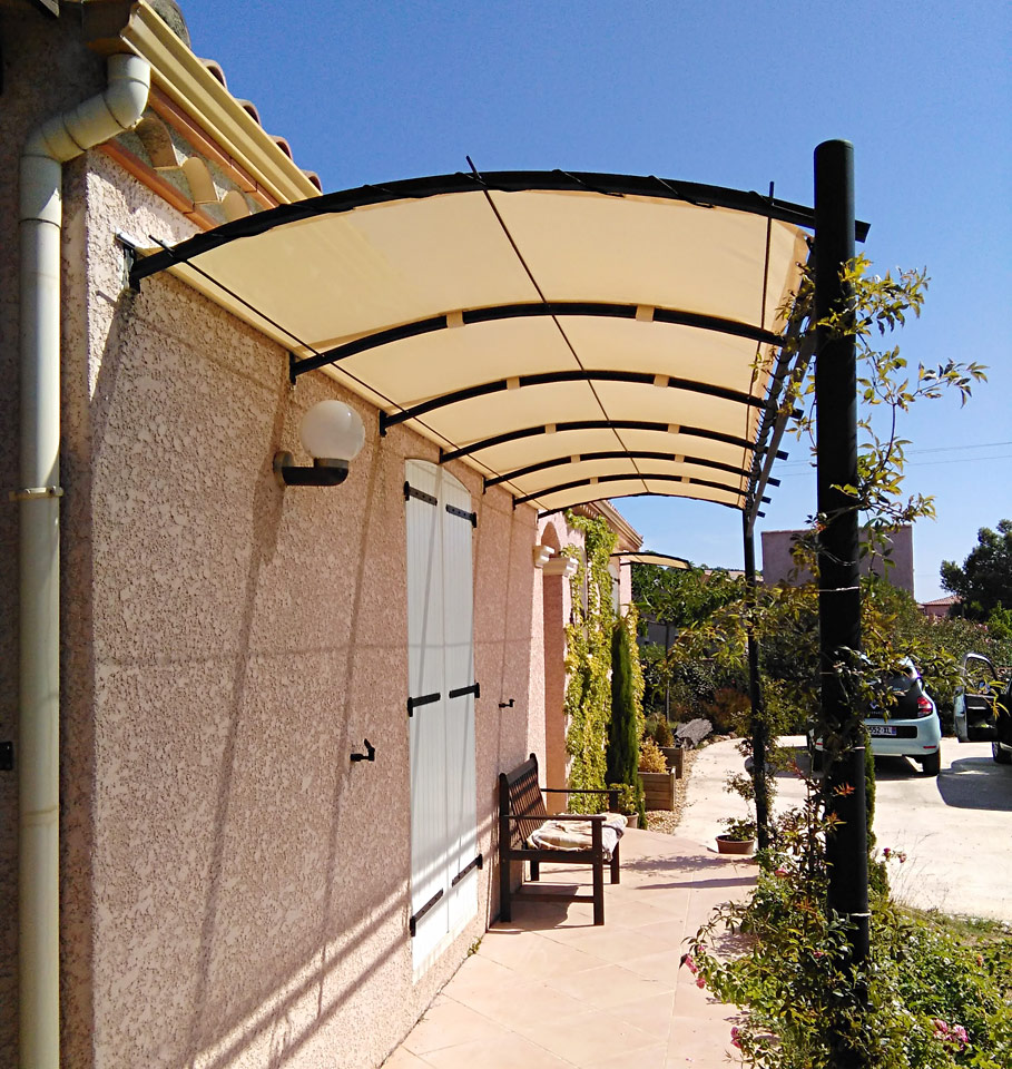 Quelques réalisations de toiles de pergolas adossées ou autoportées par la Maison Simon :