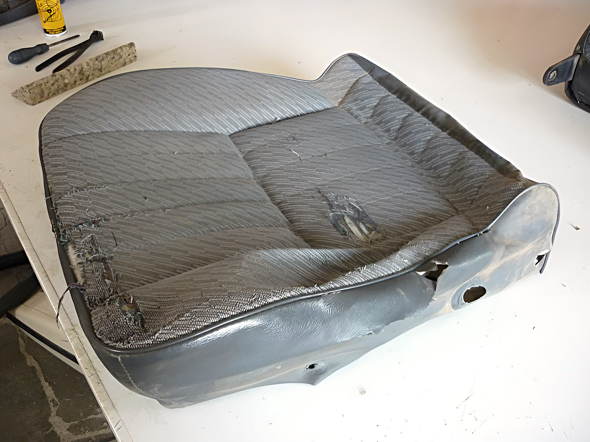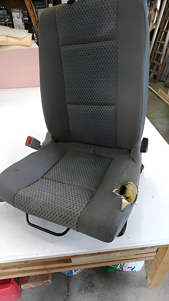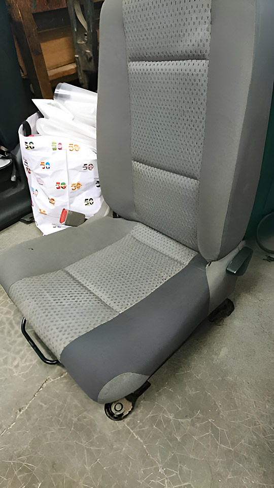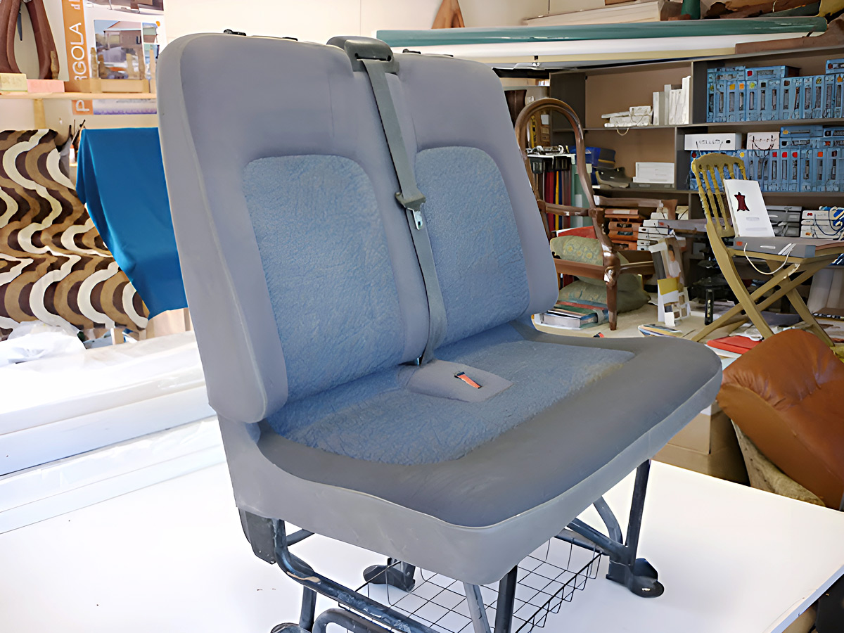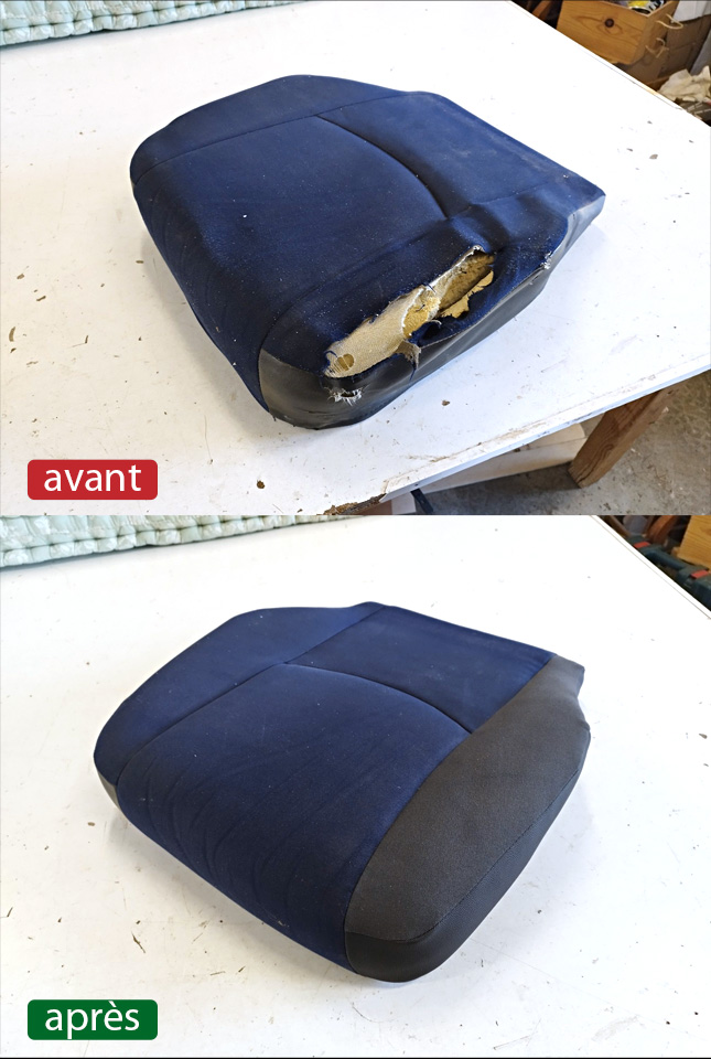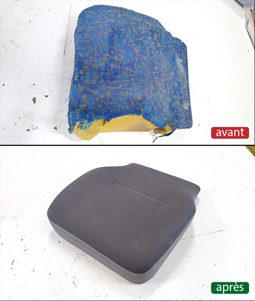 Ci-dessous, l'exemple d'un travail réalisé sur un siège de Renault Master. La détérioration classique a force de monter et descendre du véhicule côté conducteur.
