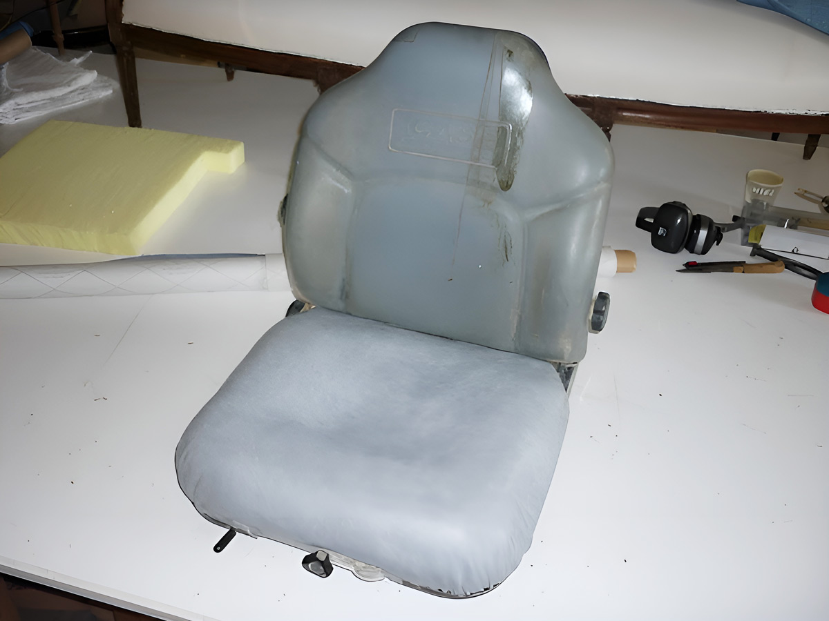 nous réhabilitons l'intégrité du siège pour des questions de sécurité et de posture au travail. En effet, ce type de siège rencontre différents problèmes tels que la détérioration prématurée due aux intempéries (pluies et rayonnements UV) ou à son utilisation intensive.