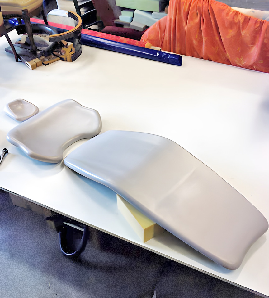 Voici un exemple de la réfection d'un fauteuil d'auscultation pour un cabinet dentaire. Nous avons procédé de la manière suivante : nous sommes d'abord venus voir le travail à réaliser, puis nous avons proposé un devis, qui, après acceptation a donné suite aux travaux. Ces derniers ont été effectuée lors des congés du dentiste et consistaient au démontage des trois parties, à leur réfection en atelier et à leur remontage.