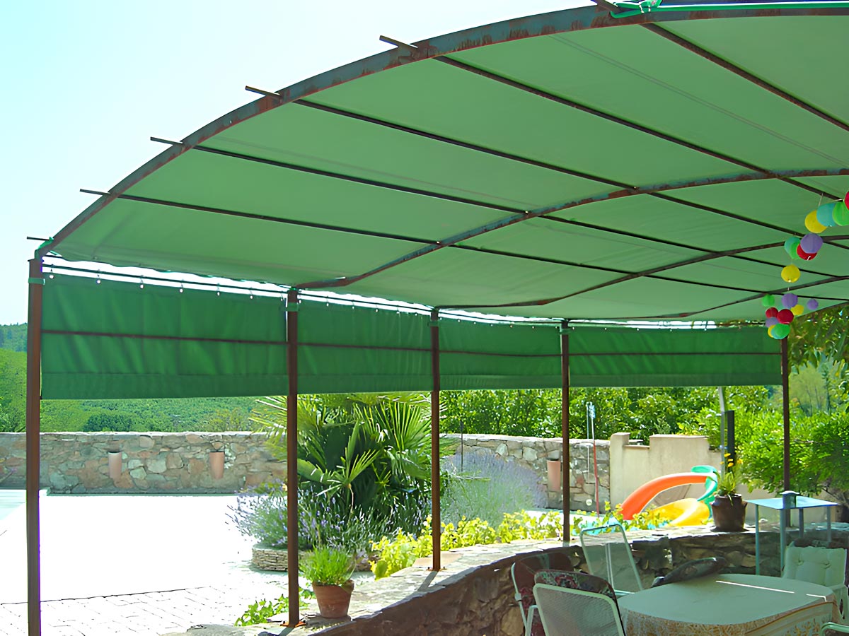 Nous réalisons sur mesures les toiles pour pergola adossée ou autoportée. Sur des structures en métal ou en bois. Que ce soit pour se protéger du soleil, de la pluie, de la chaleur mais aussi du vent.