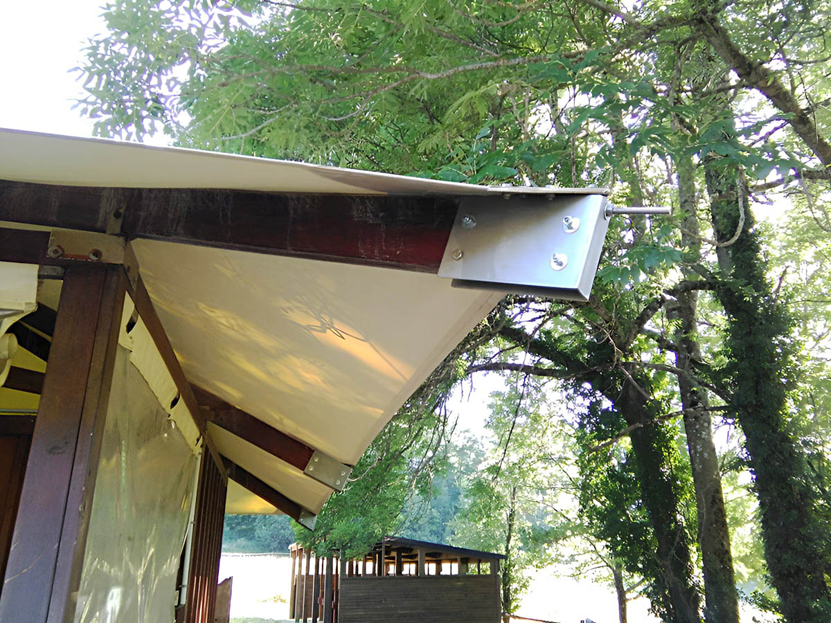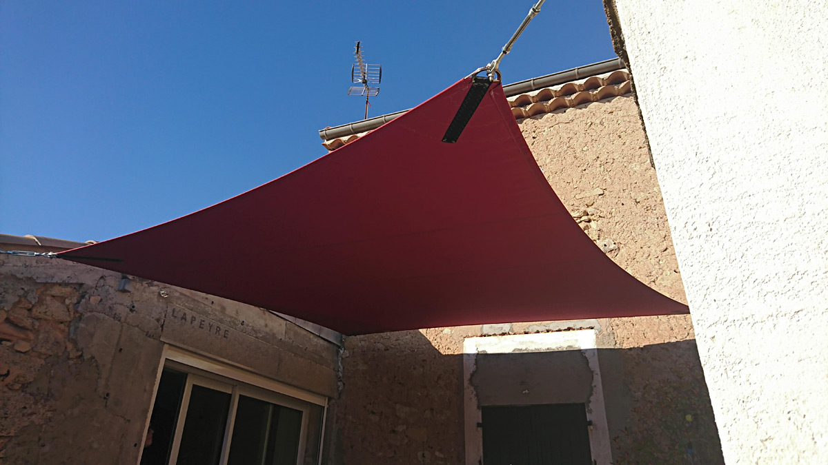Une voile d’environ 18 m² supporte des tensions de l’ordre de 300 kg par pointe et ces tensions peuvent doubler en fonction de l’implantation et des conditions météorologiques. Le recours à un installateur professionnel est essentiel, car nous saurons prendre en compte tous les paramètres. Ainsi, la voile correctement installée et tendue garantira le meilleur effet visuel, et ne subira pas de vieillissement accéléré par battement au vent ou de dégradation à cause des poches d’eau.